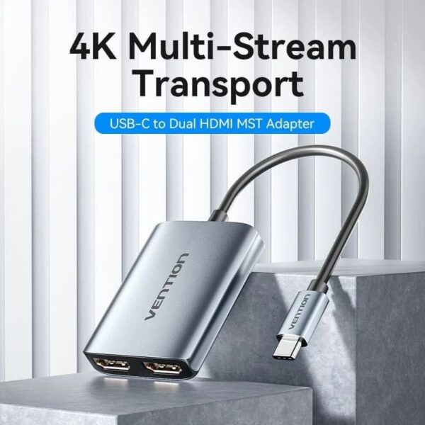 Cable Conversor Vention ACZHB/ USB Tipo-C Macho – 2x HDMI Macho/ Gris