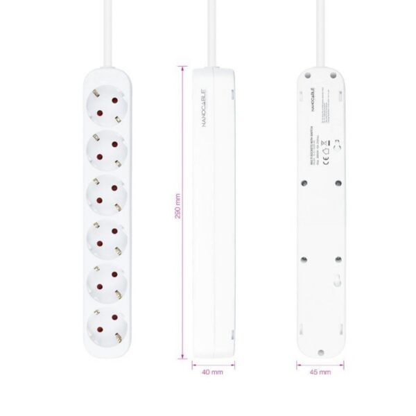 Regleta Nanocable 10.37.0006-NS/ 6 Tomas de Corriente/ Cable 1.4m/ Blanca