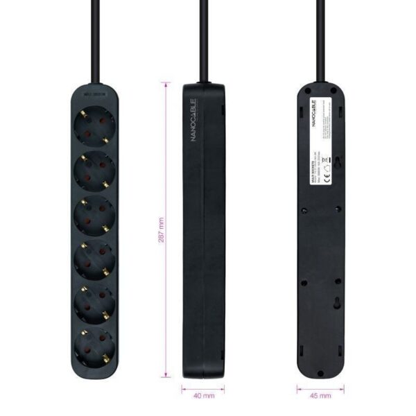 Regleta Nanocable 10.37.0006-NS-BK/ 6 Tomas de Corriente/ Cable 1.4m/ Negra