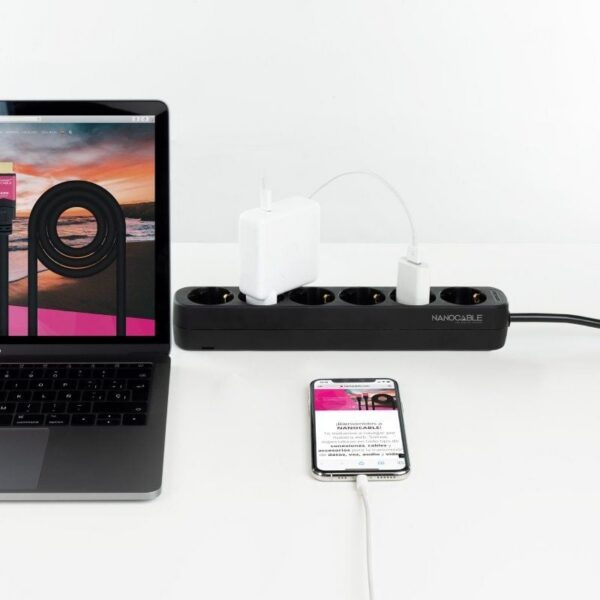 Regleta con Interruptor Nanocable 10.37.0004-BK/ 4 Tomas de Corriente/ Cable 1.4m/ Negro
