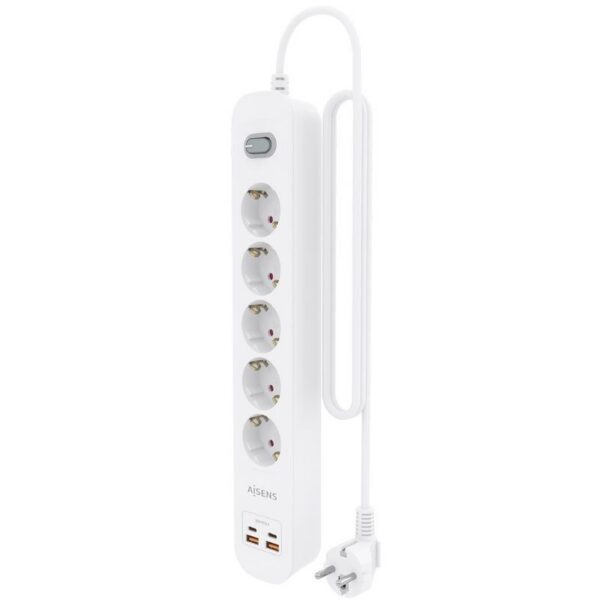 Regleta con Interruptor Aisens ASPS-2A2C14-W/ 5 Tomas de Corriente/ 2 USB – 2 USB Tipo-C/ Cable 1.4m/ Blanco
