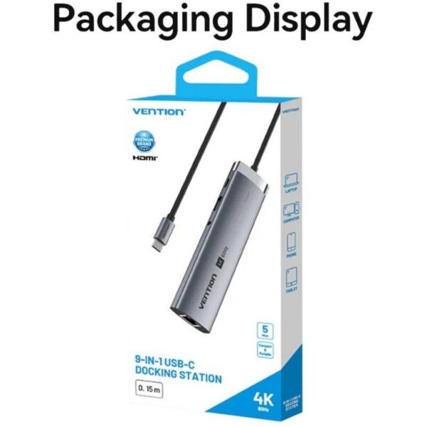 Hub USB Tipo-C 3.2 Vention TGVHB/ 2xUSB/ 1xUSB Tipo-C PD/ 1xUSB Tipo-C/ 1xRJ45/ 1xLector de Tarjetas/ 1xJack 3.5mm/ 1xHDMI/ Gris