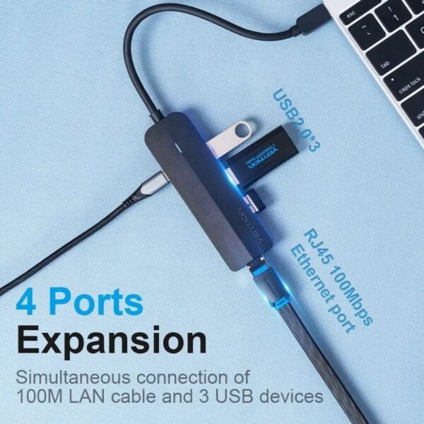 Hub USB Tipo-C Vention TGOBB/ 3xUSB/ 1xRJ45/ 1x Micro B PD
