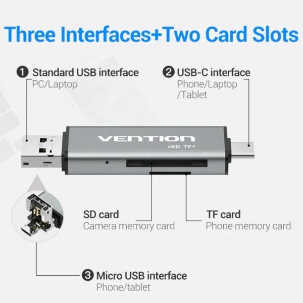 Lector de Tarjetas Externo Vention CLKB0/ USB 3.0 y USB Tipo-C