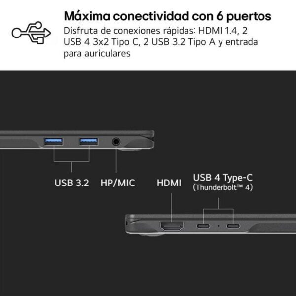 Portátil LG Gram 14ZD90T-G.AX88B Intel Core Ultra 7-255H/ 32GB/ 1TB SSD/ 14″/ Sin Sistema Operativo