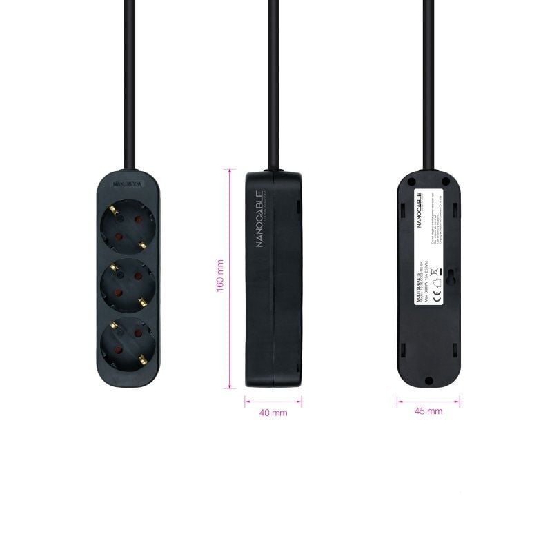 Regleta nanocable 10.38.0003-ns-bk/ 3 tomas de corriente/ cable 1.4m/ negra Longitud del Cable:1.4 m;Salidas:3 Schuko;