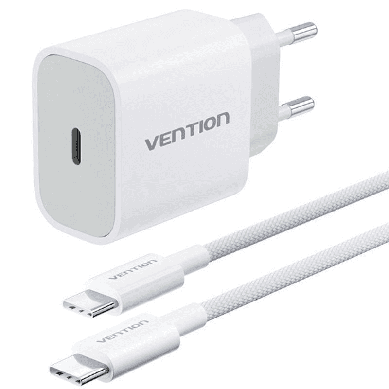 Vention Cargador USB-C 20W con Cable 1m G12W0-EU – Blanco