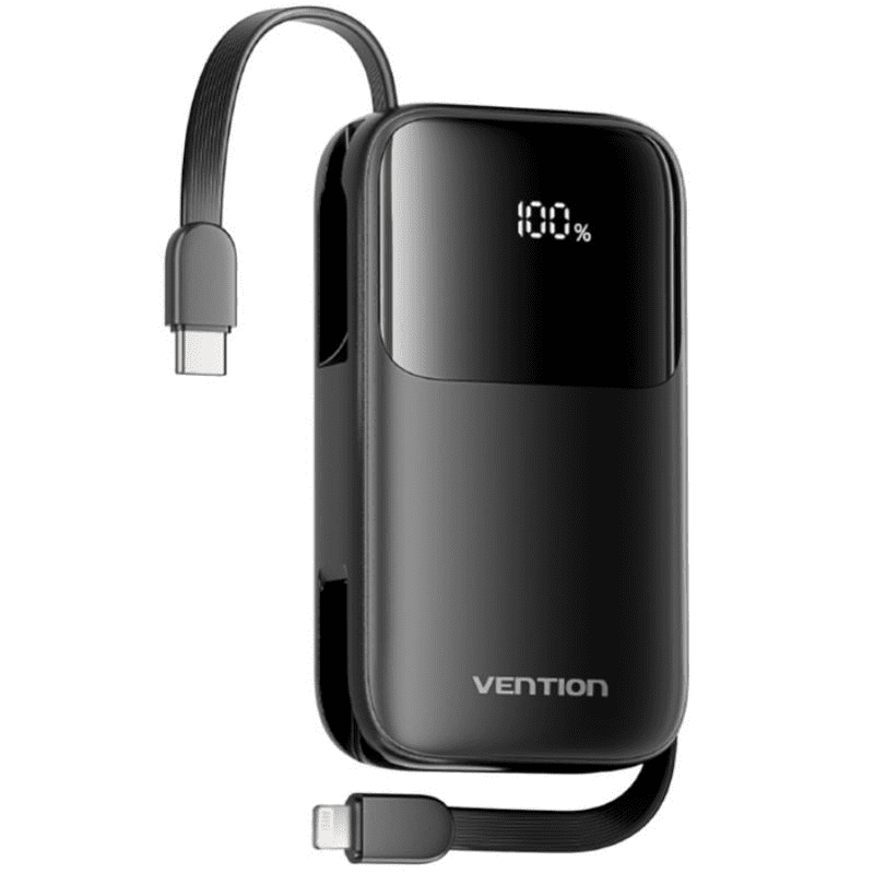 Powerbank 10000mAh Vention I11BA/ 22.5W/ Negra/ Incluye Cable USB Tipo-C y Lightning