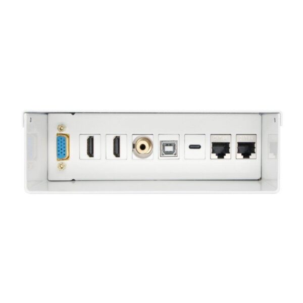 - 1 x Caja de conexiones multimedia de pared que lleva VGA, HDMI, Jack AUDIO 3,5mm, RCA, USB2.0 B, USB 3.0 y 2 x RJ45, blanco