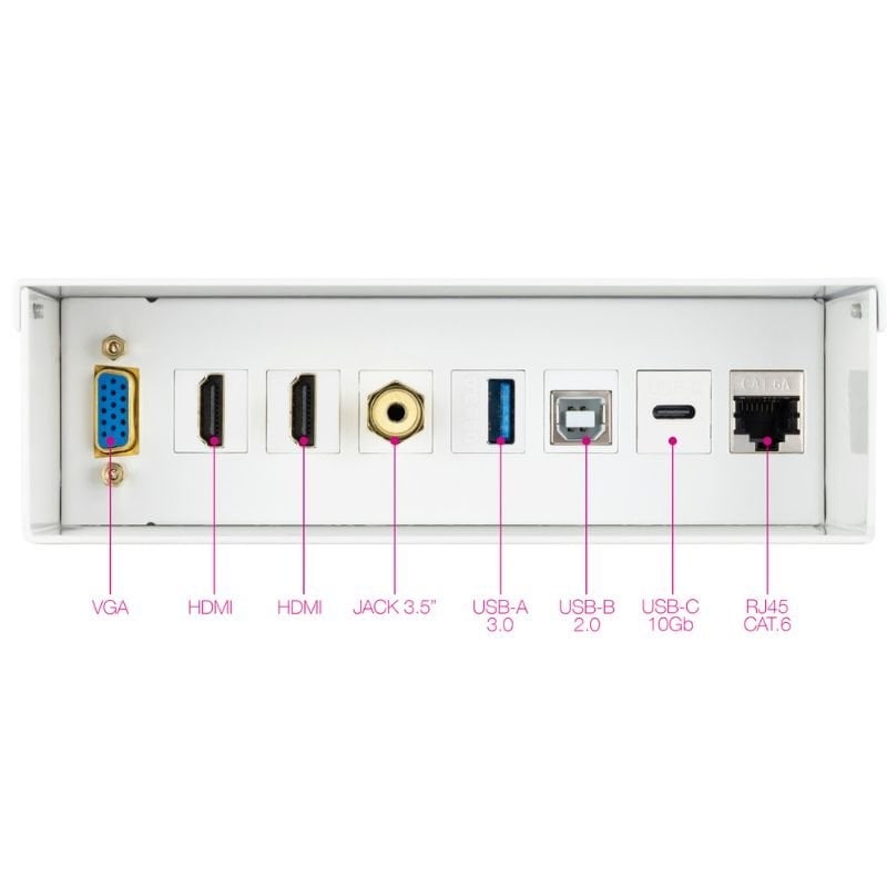 Caja de conexiones multimedia de pared VGA + 2xHDMI + JACK3.5 + 1xUSB-C 10G + 1xUSB-B 2.0 + 1xUSB-A 3.0 + 1xRJ45 Cat.6A STP, Blanco