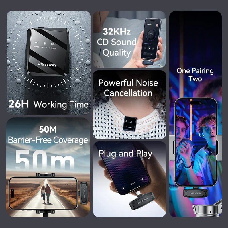 - Amplia compatibilidad: el sistema de micrófono Vention está diseñado para funcionar sin esfuerzo con una variedad de dispositivos USB-C, como teléfonos inteligentes y tabletas, lo que lo hace versátil y fácil de usar en diferentes escenarios.