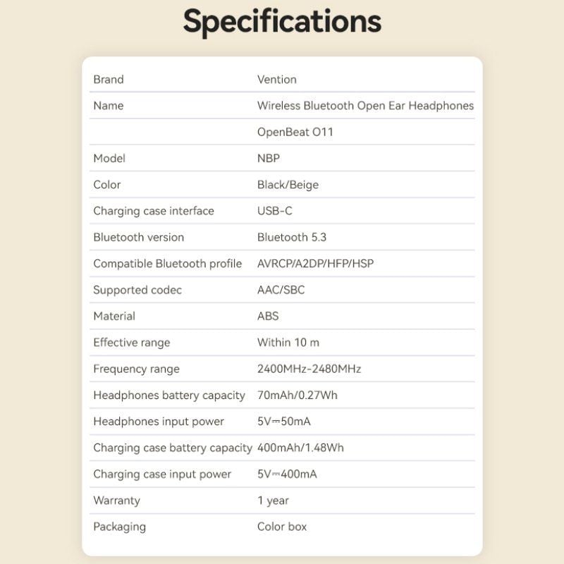 Auriculares deportivos bluetooth vention open ear openbeat o11 nbpb0 con estuche de carga/ negros Carga Rapida:No;Color:Negro;Conectividad:Bluetooth;Incluye Cargador:No;Microfono:Con Microfono;Potencia máxima de carga:5 W;Potencia mínima de carga:5 W;Tipo de Auricular:Deportivos;