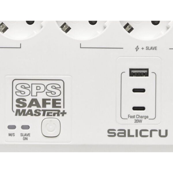 Regleta con interruptor Salicru SAFE MASTER+/ 5 Tomas de corriente/ 1 Master/ 2 USB Tipo-C/ 1 USB/ Cable 1.4m/ Blanca