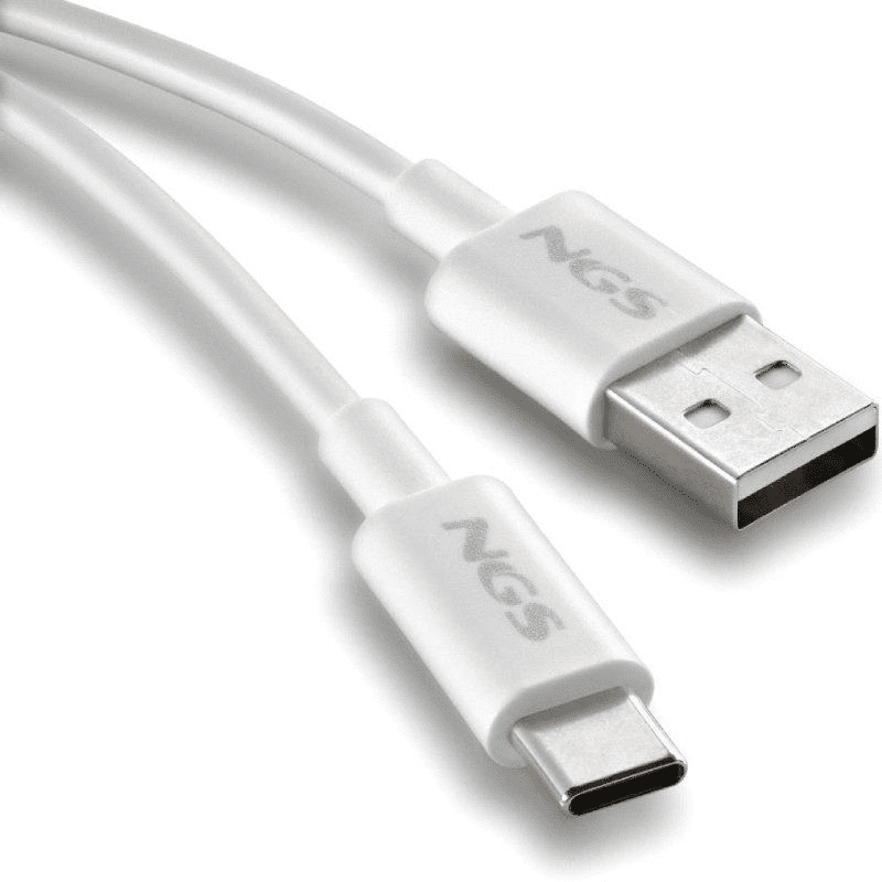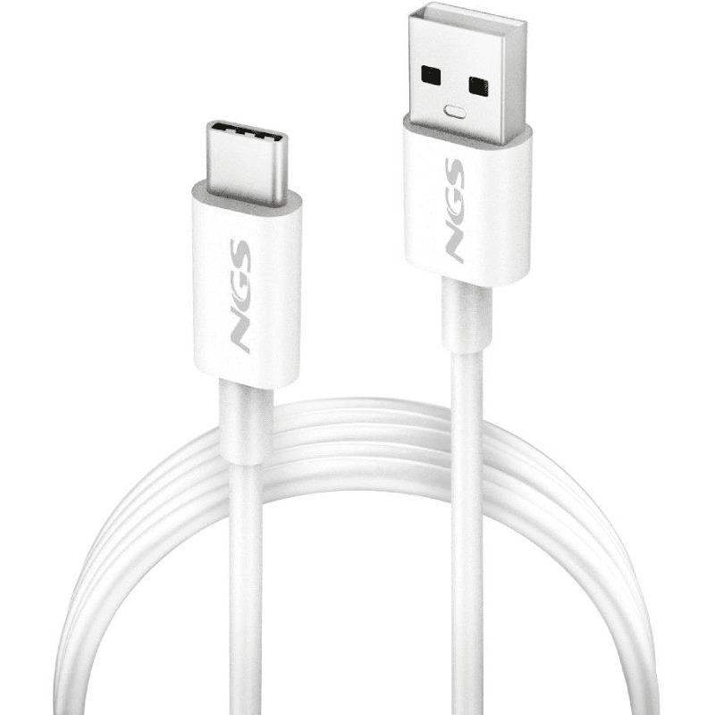 Cable USB 2.0 NGS ZYRO-AC/ USB Macho – USB Tipo-C Macho/ Hasta 15W/ 480Mbps/ 1m/ Blanco