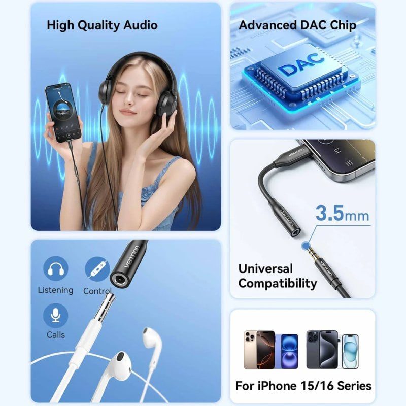 Vention adaptador audio USB-C a 3.5mm jack con DAC 0.1m BIIBA Negro