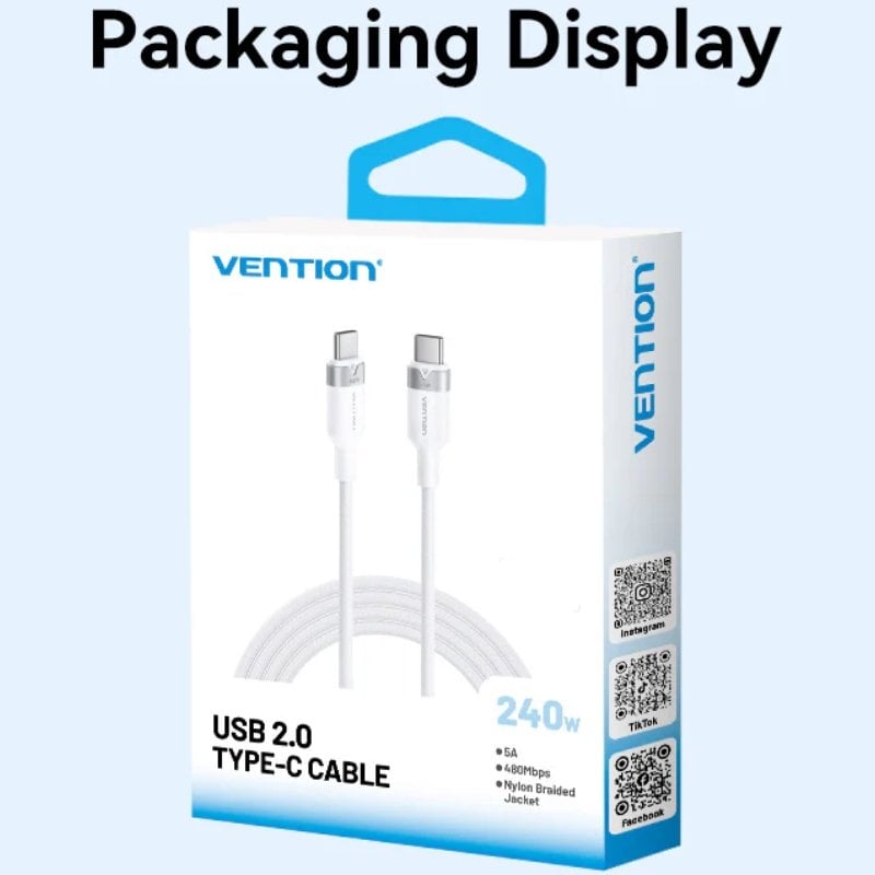 Cable usb 2.0 tipo-c 5a vention trish/ usb tipo-c macho – usb tipo-c macho/ hasta 240w/ 480mbps/ 2m/ azul A Conector:A USB Tipo-C Macho;De Conector:USB Tipo-C Macho;Potencia Máxima:240 W;Tamaño:2 M;Tipo:Cable;