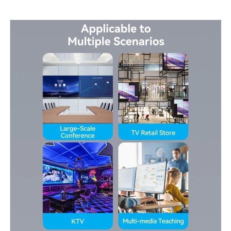 El Splitter 4K 60Hz Vention HDMI 1×8 (AKQB0-EU) está diseñado para ‘transmitir señales HDMI de audio y vídeo digital desde una fuente HDMI ‘(ordenador, reproductor multimedia, reproductor de DVD, portátil, etc.) ‘simultáneamente a 8 dispositivos con entrada HDMI (TV, plasma panel, ‘proyector, monitor, etc.).