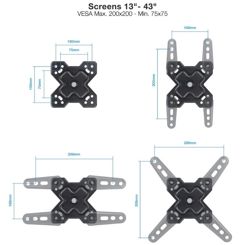Soporte de Pared para Pantallas 13′-43′, Negro