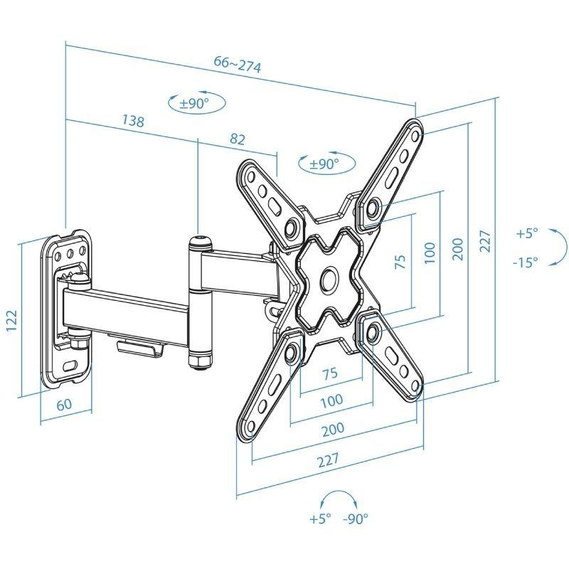 Soporte de pared extensible/ giratorio/ inclinable tooq lp1344tn-b para tv de 13-43″/ hasta 20kg Tipo de Soporte:De Pared;VESA Maximo Ajustable:200×200;