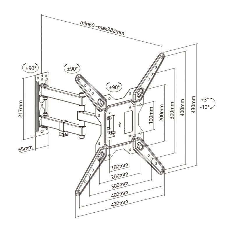 - VESA Máximo: 400x400mm (Compatible con VESA de 100×100, 100×200, ‘200×100, 200×200, 300×200, 400×200, 300×300, 400×300, 400x400mm)