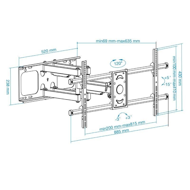 - Distancia de pared: 69-635 mm
