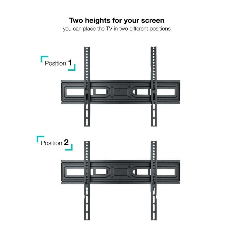 - Compatible con VESA: 100×100, 150×100, 100×150, 100×200, 200×100, ‘150×150, 200×200, 300×200, 400×200, 300×300, 400×300, 600×200, 400×400, ‘600×300, 600×400