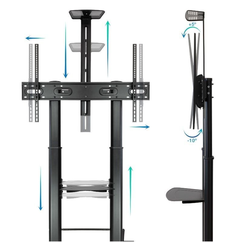 Soporte de suelo con ruedas inclinable/ nivelable tooq fs20404hm-b para tv de 60-100″/ hasta 100kg Tipo de Soporte:De Suelo;VESA Maximo Ajustable:1000×600;