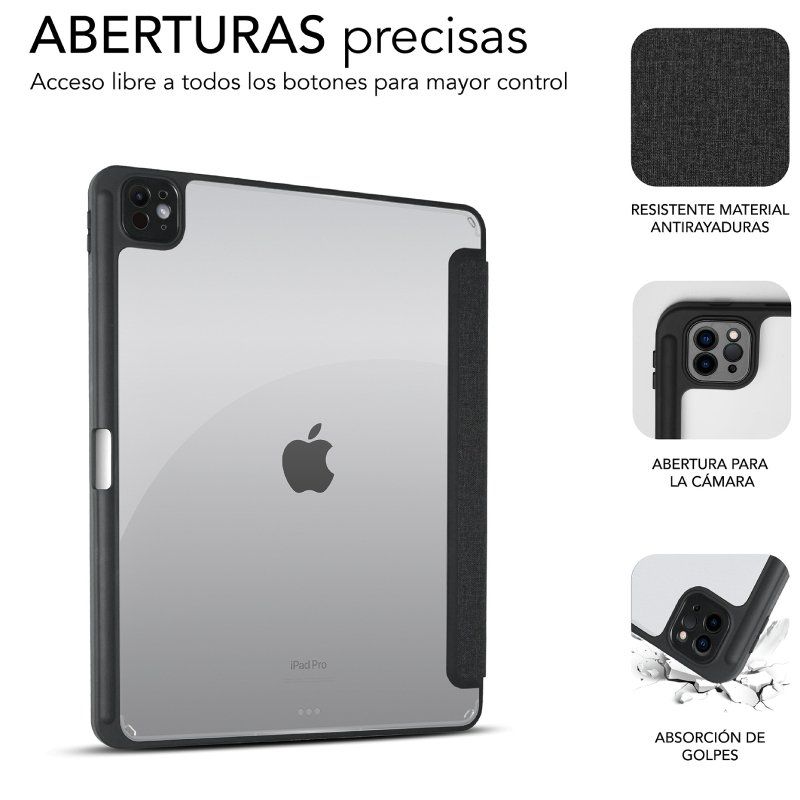 • Los bordes de la funda están especialmente reforzados para brindar una protección adicional en caso de caídas accidentales, minimizando el riesgo de daños en tu iPad Pro