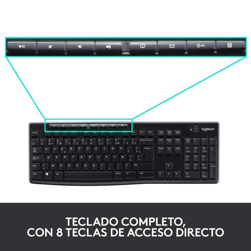 Teclado y ratón inalámbricos logitech wireless combo mk270 Color:Negro;Conectividad:RF 2.4 GHz;Tipo de Teclado:Teclado + Raton Pack;